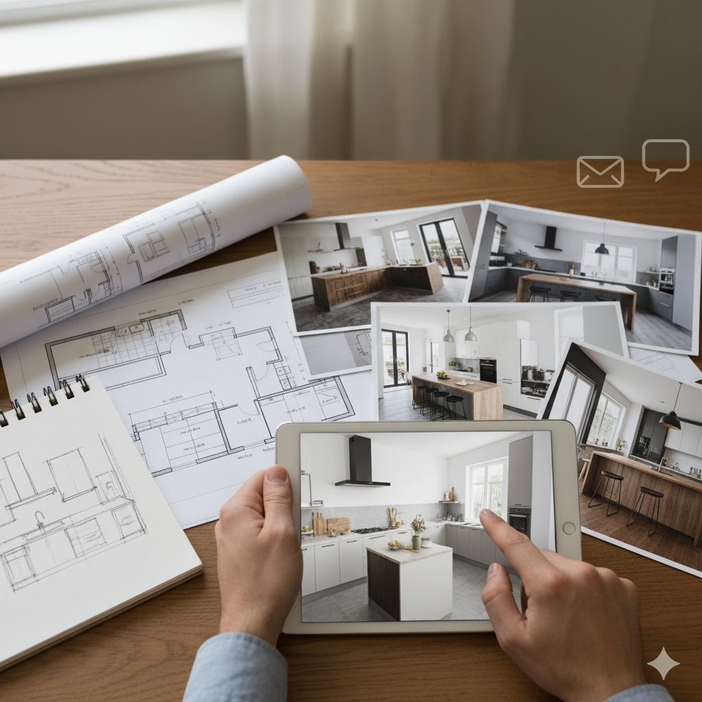 Nuestro asesor visita tu espacio para tomar las medidas exactas y entender tus necesidades, asegurando que cada detalle de tu cocina quede perfecto.